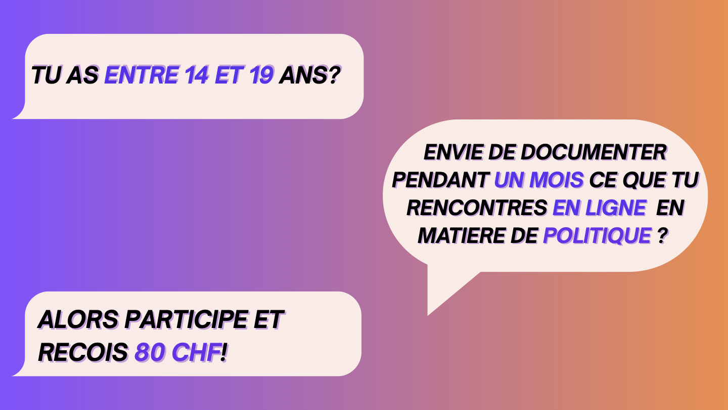 Dans le menu, vous trouverez des informations spécialement destinées aux jeunes intéressé·e·s et à leurs parent·e·s, ainsi que des détails supplémentaires sur le projet.